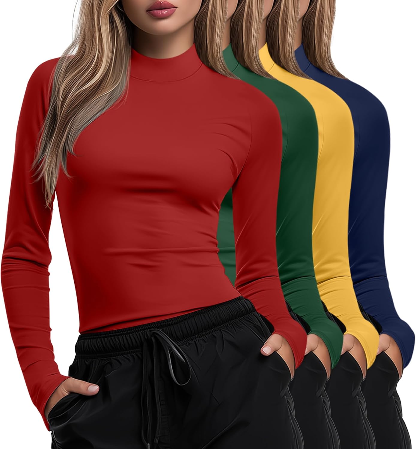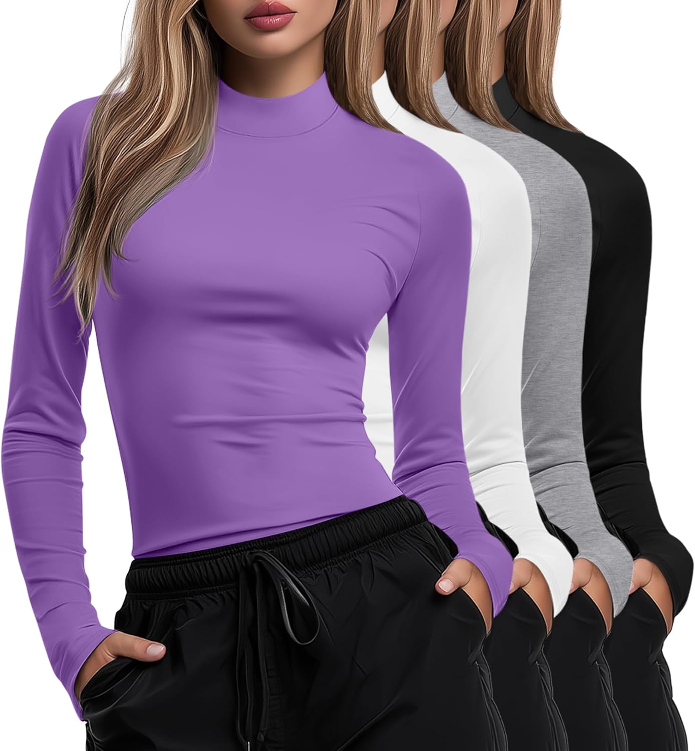 Features: Easy-care wardrobe basic: Simplify your routine with this basic mock turtleneck top. The durable blend holds its shape and resists wrinkles wash after wash for a polished look. Comfortable coverage: Enjoy warmth without bulk. The classic mock turtleneck underscrub shirts design offers elegant neckline framing. A versatile long sleeve mock neck top for women. Specifications: Material: 65% Cotton, 30% Polyester, 5% Spandex Size: from S to 2XL Package includes: 4 x Basic mock turtleneck top Notes: Manual measurement, please allow slight errors on size. The color may exist a slight difference due to different screen displays