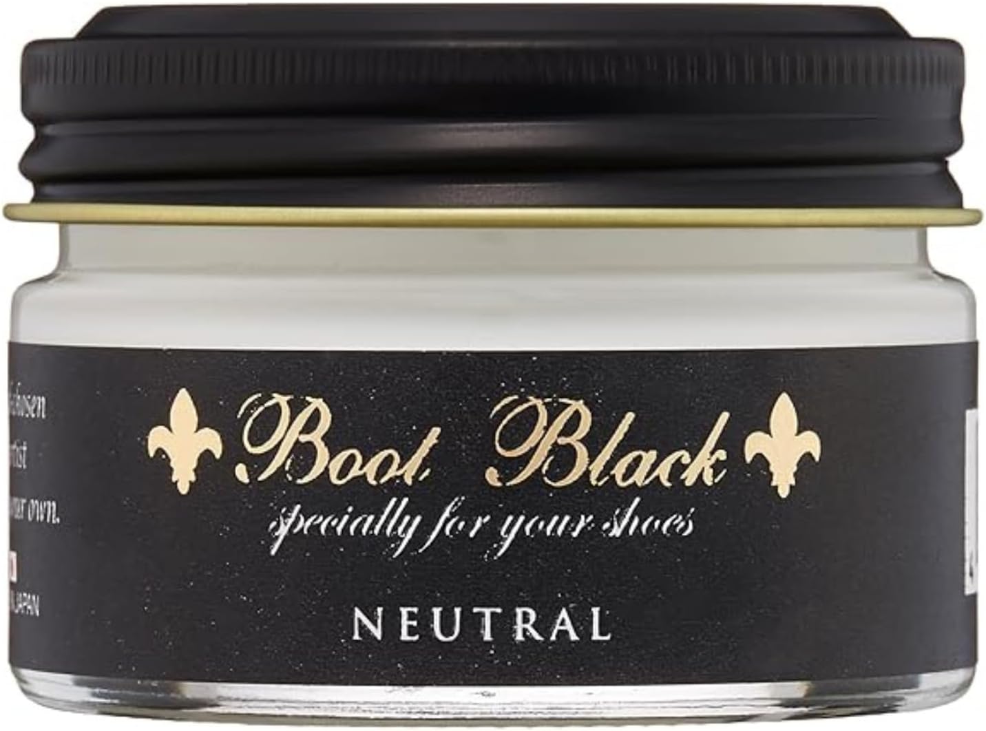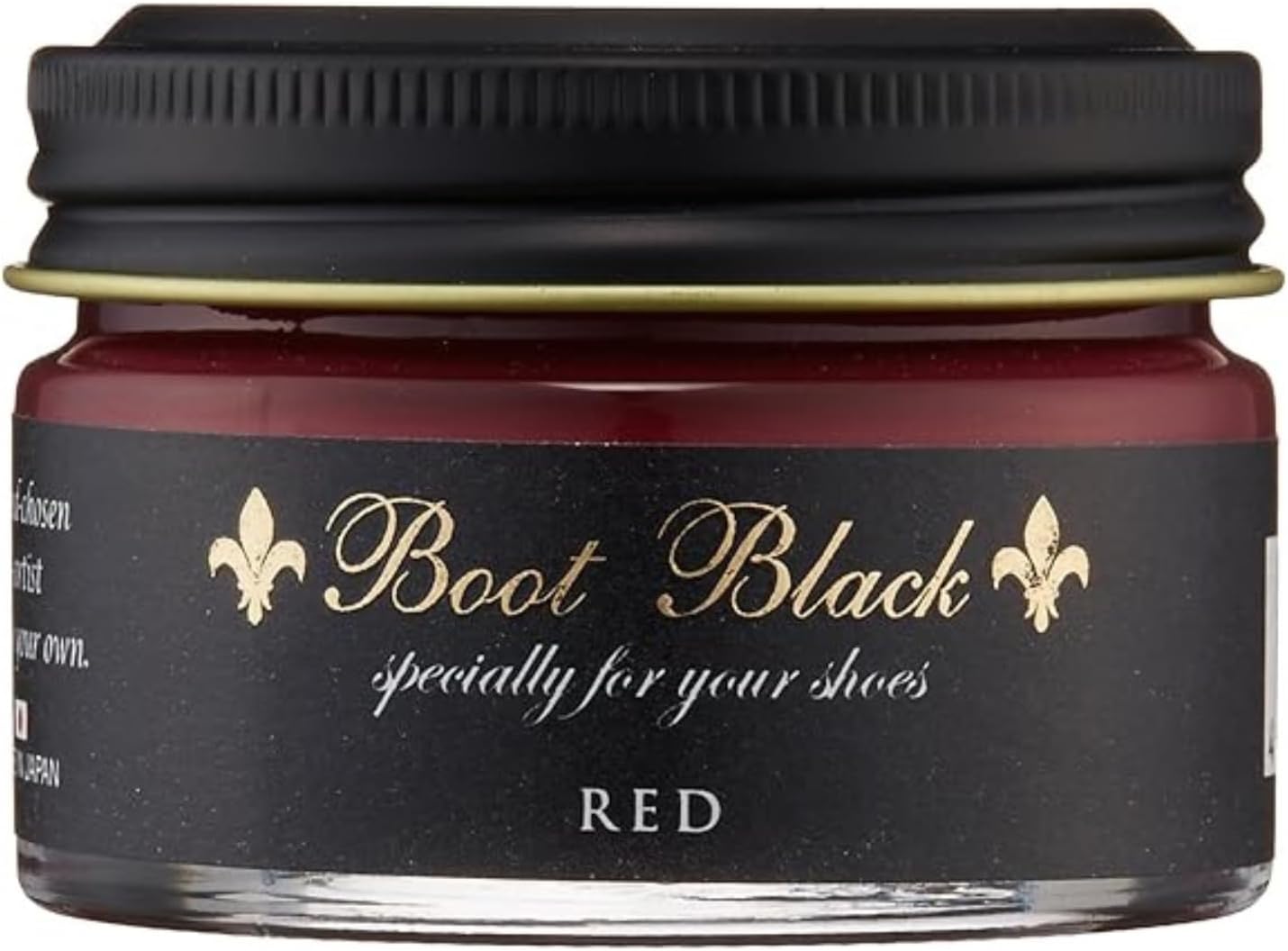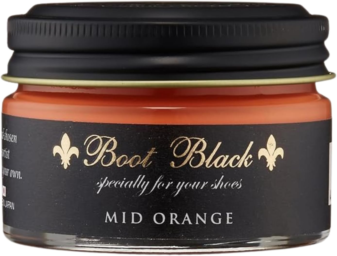 Jojoba Oil Infused | High-Pigment Formula | Made in Japan Revitalize and enhance your leather footwear with our go-to Boot Black Shoe Cream, a premium leather cream crafted in Japan with exceptional attention to quality and performance. Formulated with a luxurious blend of natural waxes, fine color pigments, and nourishing jojoba oil, this cream deeply refreshes color while delivering a soft, elegant shine. The inclusion of a mild solvent enhances pigment penetration, allowing for rich, vibrant color renewal that brings your shoes back to life—restoring depth and intensity with each application. Ideal for smooth leather shoes, the cream also forms a light protective barrier that shields the surface from everyday weather elements. Usage Tip: Apply a small amount with a soft cloth or applicator brush. Allow to absorb, then buff with a horsehair brush for a matte sheen. For mirror gloss, follow with Boot Black Shoe Polish or High Shine Coat.