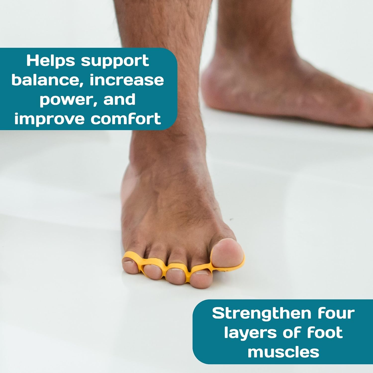 These patented bands were specifically designed by Dr. Courtney Conley to strengthen the four layers of muscles in your feet. Strong feet can help to promote: * increased balance * decreased pain * decreased risk of falls These bands are multifunctional and can be used in a variety of ways to target the four layers of intrinsic foot muscles. Each order comes with a set of three strengtheners (easy, medium, difficult), and instructional videos to get started.