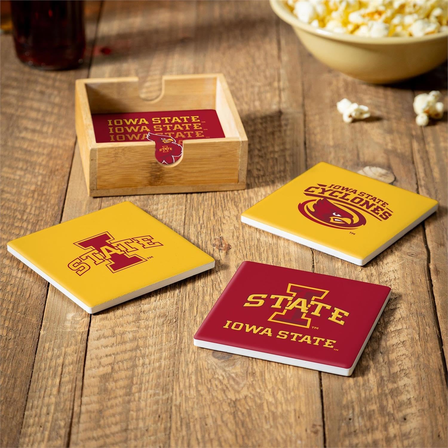 Protect your tables in style with this coaster and caddy set. These coasters showcase team colors and an officially licensed logo, ideal for sports fans or casual collectors. A caddy is included for easy organization and cleaning. They make an excellent gift for anyone seeking a bit of luck on game day.