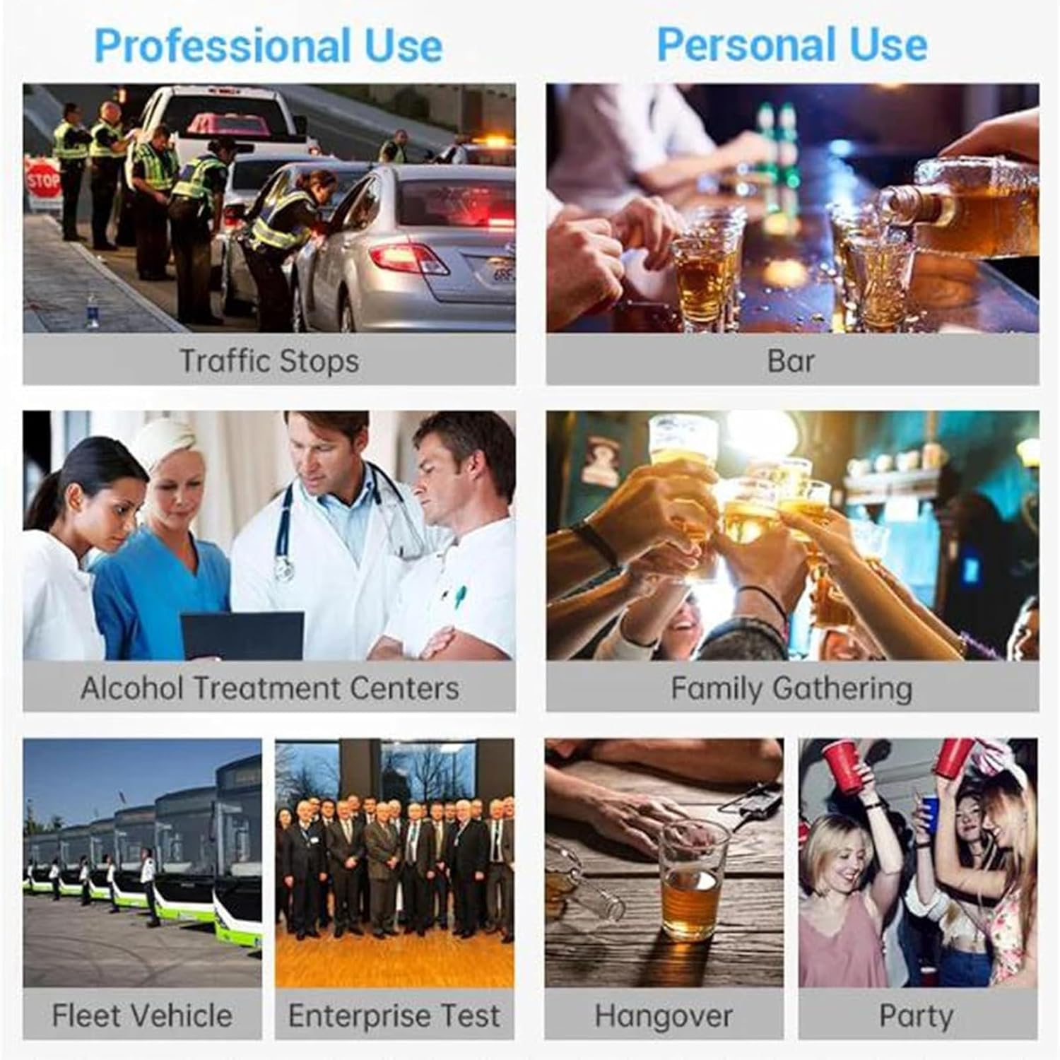 Product Information: Product Name: Protable Alcohol Tester Display: 1.3-Inch 240*240 Full-Color TFT LCD Display Sensor Type: Fuel Cell Sensor Measuring Range: 0-400mg/100ml Bac Sensitivity/Resolution: 5mg/100ml/1mg/100ml Sampling : Air Blowing Induction Or Manual Detection Data Storage: 30,000 Items Operation Mode: 4 Buttons, The Warning Light, Whistle And Lighting Can Be Independently Operated In The Off State Auxiliary Functions: .Led High-Bright White Light Lighting, High-Decibel Whistle, Red Warning Light, Voice Broadcast Power Supply: 3000mAh Lithium Battery Measurement Time: 1~15 Seconds Adjustable Product Size: 262mm*45MM Product List: 1*Protable Alcohol Tester; 1*Charging Cable; 1*Manual Warm Tips: Everyone'S Reaction To Alcohol And The Environment In Which It Is Used Are Different. The Test Results Are For Reference Only And Cannot Be Used As A Standard For Judging Drunk Driving.