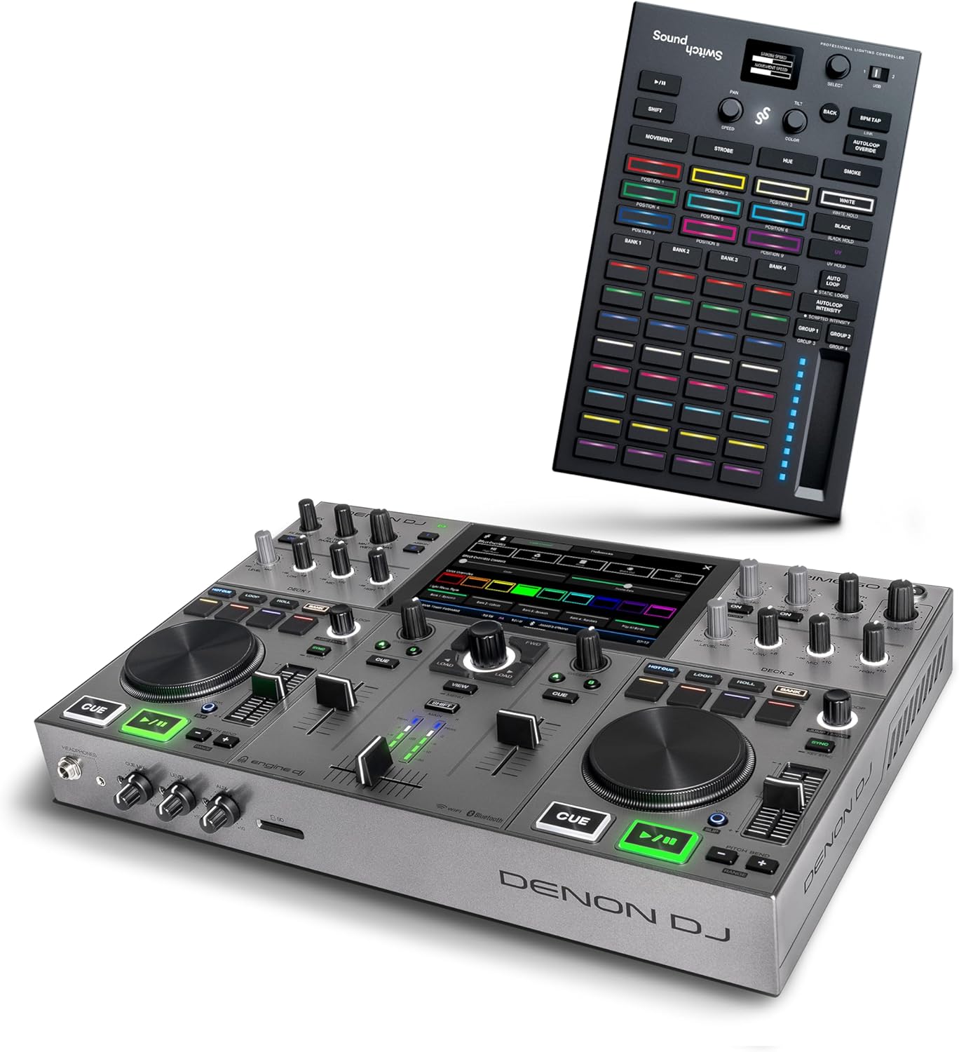 High-End Performance Power on the GO Meet PRIME GO+, the ultimate portable DJ controller and mixer that combines high-end performance with exceptional music streaming. This sleek, battery-powered standalone DJ system is designed for DJs on the move, offering access to 100+ million tracks through built-in Wi-Fi and a special DRM chip. Stream seamlessly from Apple Music, Amazon Music Unlimited, TIDAL, Beatport, Beatsource, and Soundcloud GO+, enjoying flawless, stable performances by buffering tracks into the internal memory. You can easily access saved music libraries and playlists using the SD card slot or USB input on your Denon DJ equipment. Despite its compact size, PRIME GO+ delivers robust connectivity with Bluetooth in/out plus professional-grade wired options including balanced XLR and ¼” booth outputs. Rechargeable battery ensures you can prep, practice, and perform anywhere, free from studio constraints. Moreover, with Engine DJ OS, you'll receive frequent updates packed with new features. With added Stems functionality, DJs can now isolate or remove any track's vocal, melody, bass, and drums. Pre-render tracks or playlists with Engine DJ Desktop, export to a drive, insert into your PRIME GO+, and enjoy standalone access to high-quality 4-part Stems while performing. One-time software license purchase applies.
