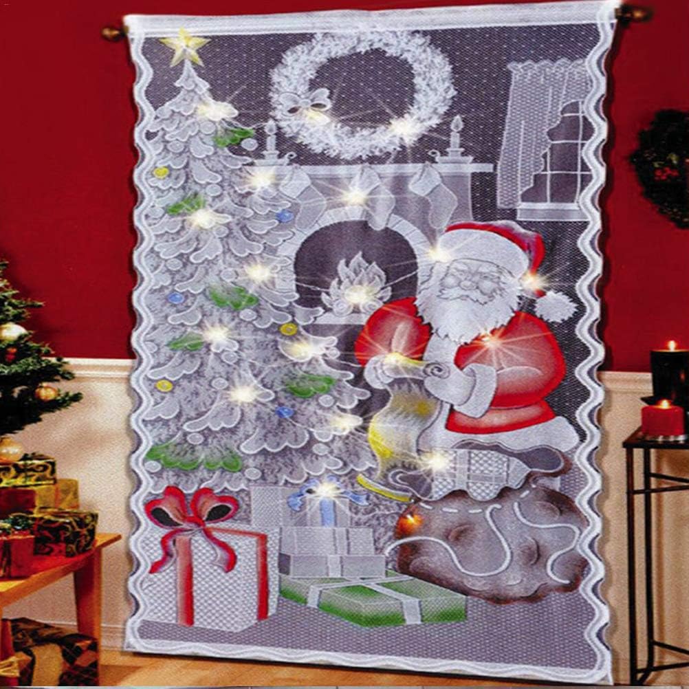 1. 1. Made of lace fabric with a very smooth and and tear resistance.2. 2. Insert a light from the braided hole on the back to illuminate the curtain(for with led light only).3. 3. Christmas elements, can be used as decorations for Christmas parties.4. 4. White translucent fabric, Christmas snowman pattern creates a Christmas .5. 5.Size: about 84*40in, suitable for most windows, hangs to create a festive . Suitable for home decor or as a Christmas present.Specification:Fabric material: polyester fiberSize: about 102x213cm / 40x84inPower supply: 20 LED strings: 2*AA batteries (not included)packing list:1 pcs Christmas White Lace Window Curtain1 pcs Sting LightNotice:Due to the different monitor and light effect,the actual color maybe a slight different from the picture color.Please allow 2-3cm differs due to manual measurement.