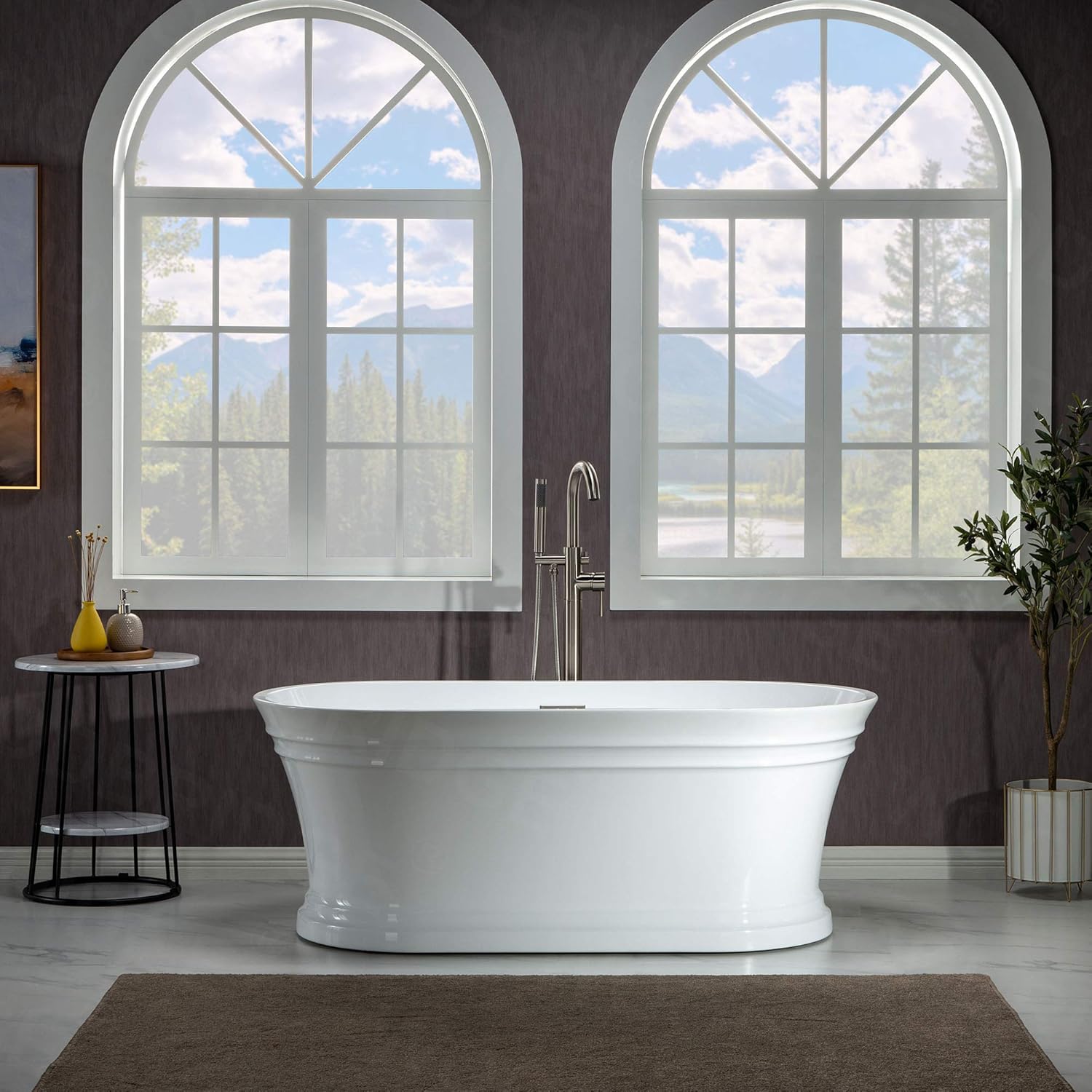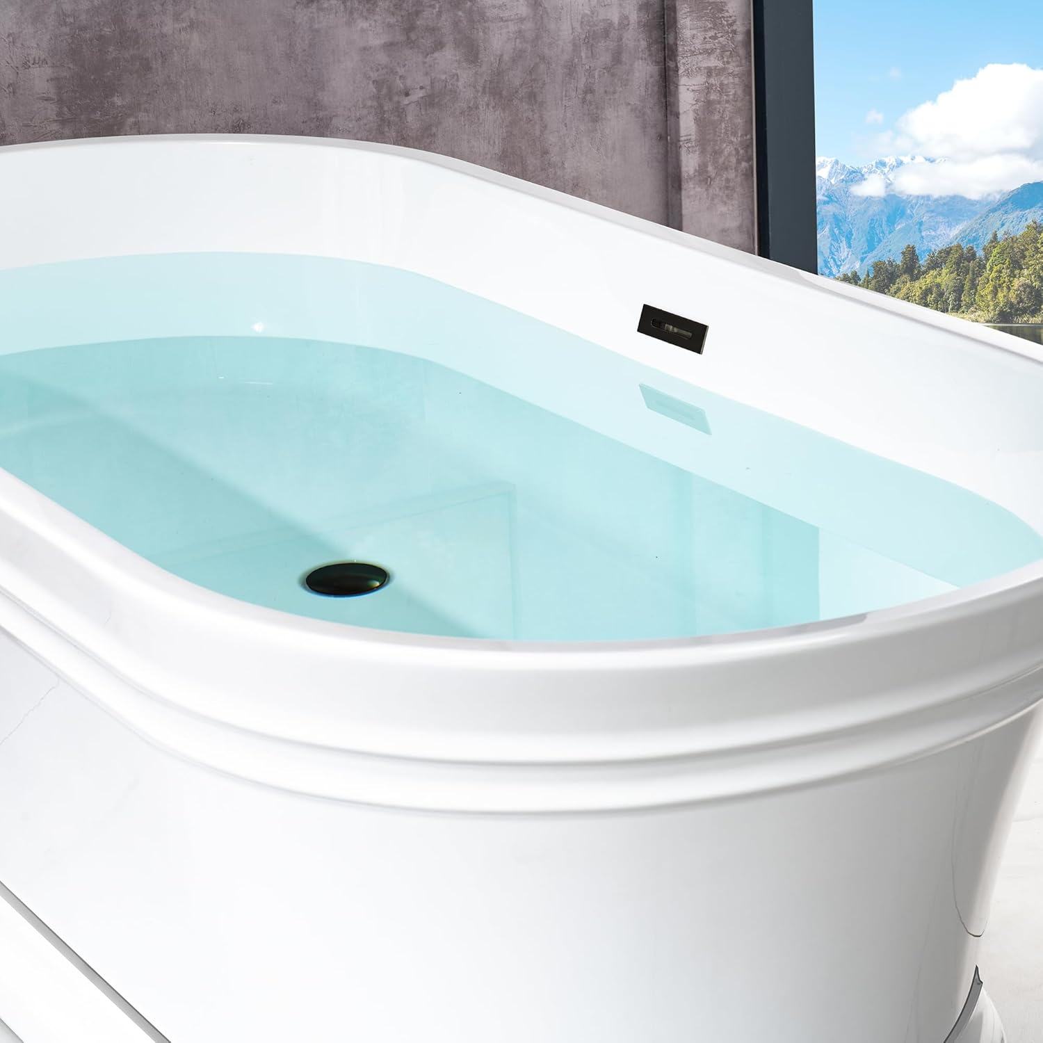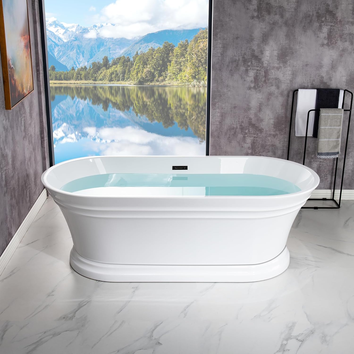 WOODBRIDGE 67"Freestanding White Acylic Soaking Bathtub with Matte Black Drain and Overflow